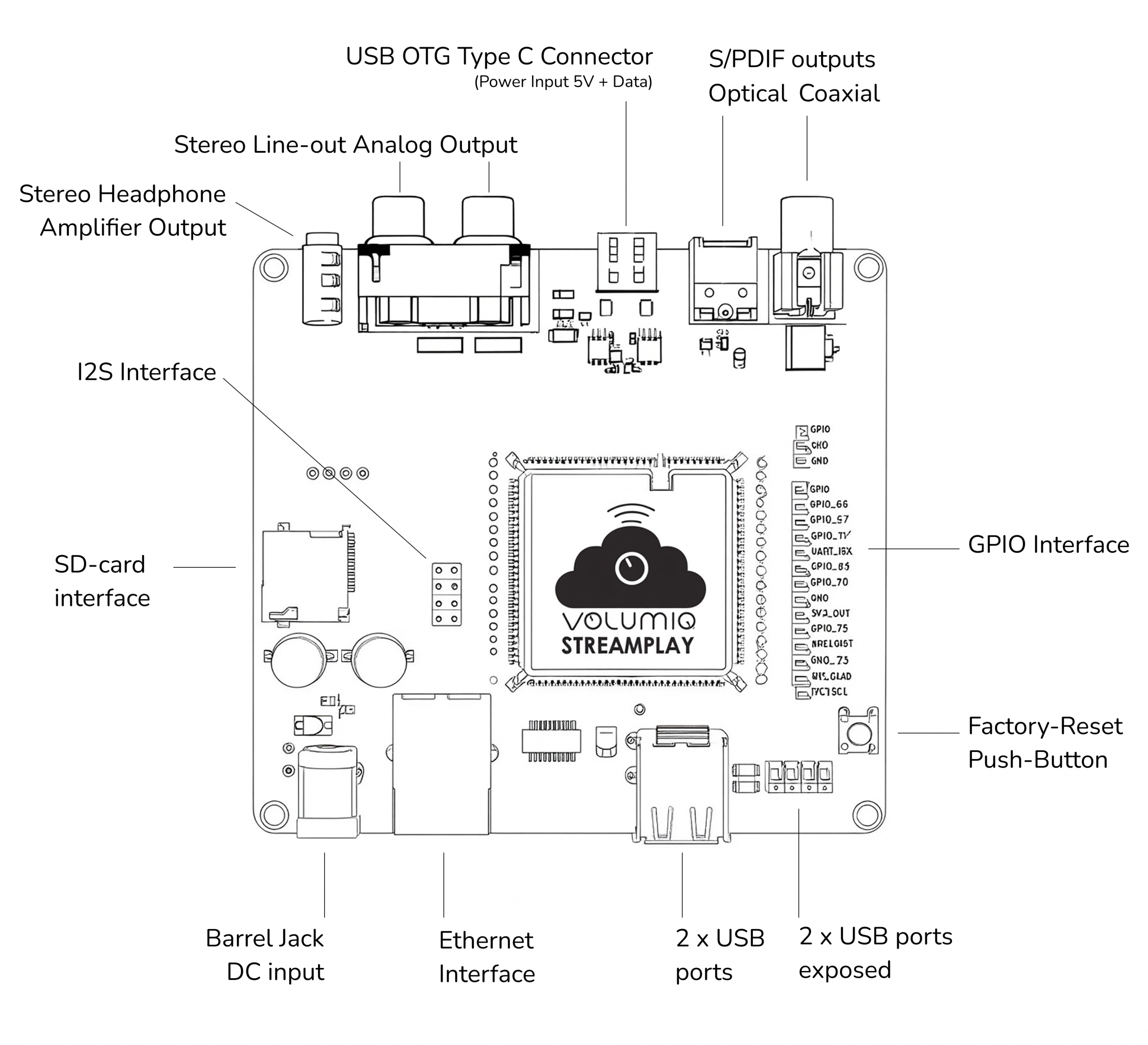 The StreamPlay Evaluation & Development Kit has been designed to enable the full Volumio OS experience on the StreamPlay module, while significantly reducing development costs and accelerating time-to-market.
