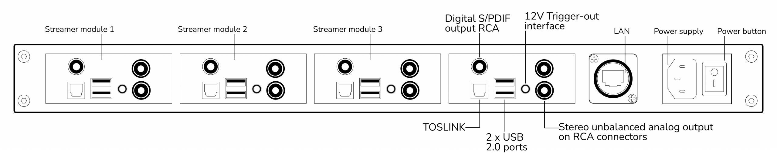 with 4 AudioPro streamer modules in a rack, for pro and Custom projects.